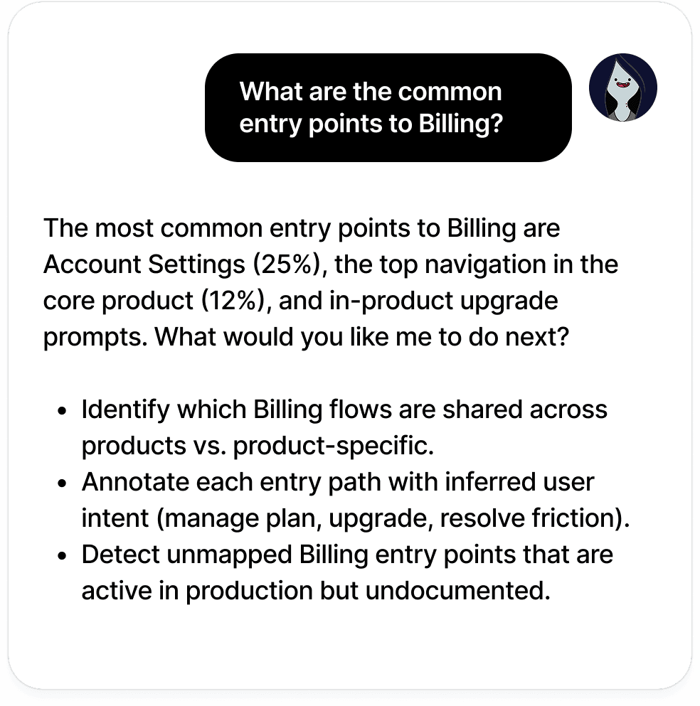 Handrail adapts to how different teams reason about product experience — from high-level decisions to detailed UX audits.